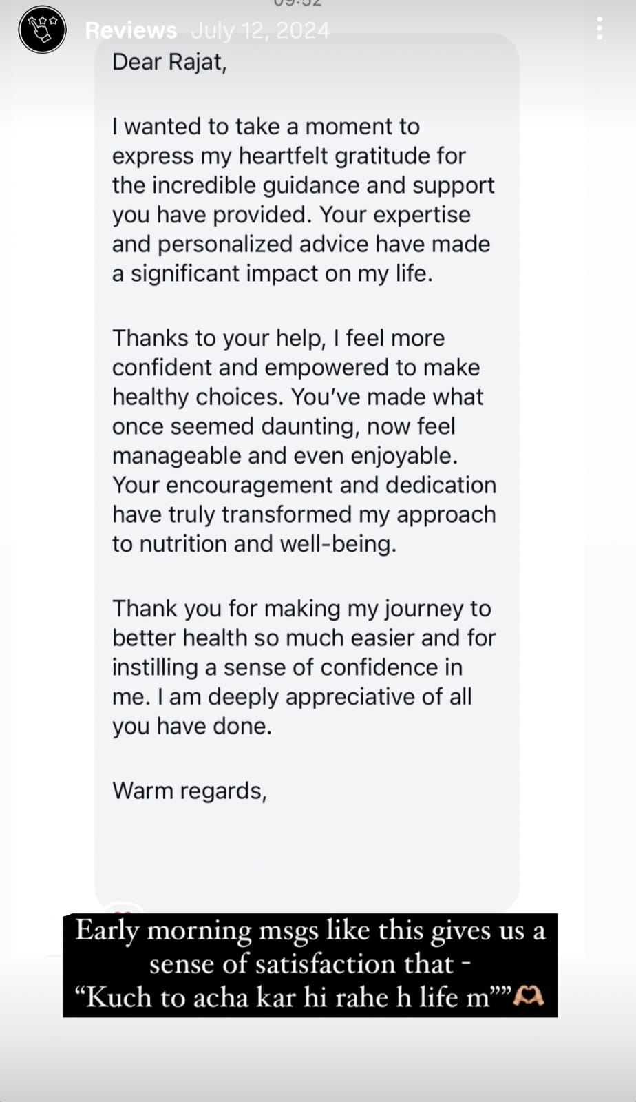 Watch real client video reviews showcasing incredible health transformations, sustainable results, and the life-changing impact of Rajat’s expert guidance.